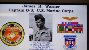 Taylor then spoke of James Warner as being the only living POW member of the post, and acknowledge his son Anthony Argenta, junior vice commander. Taylor offered some background on Warner, his1,979 days in captivity in Vietnam, and upon release and departure from the military, the remarkable legal and governmental career he realized in fulfilling his own American Dream. While in Vietnam, Warner flew more than 100 combat missions.